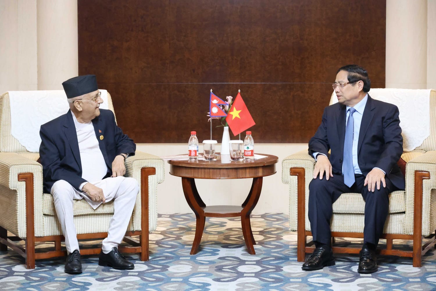 थियानजिन । प्रधानमन्त्री केपी शर्मा ओली र समाजवादी गणतन्त्र भियतनामका प्रधानमन्त्री फाम मिन चिङबीच चीनको थियानजिनमा दुईपक्षीय भेटवार्ता भएको छ ।